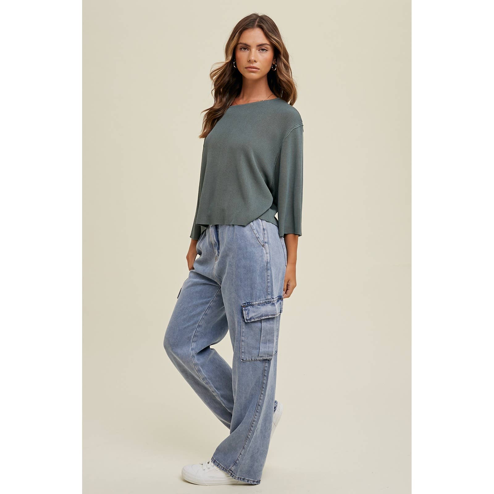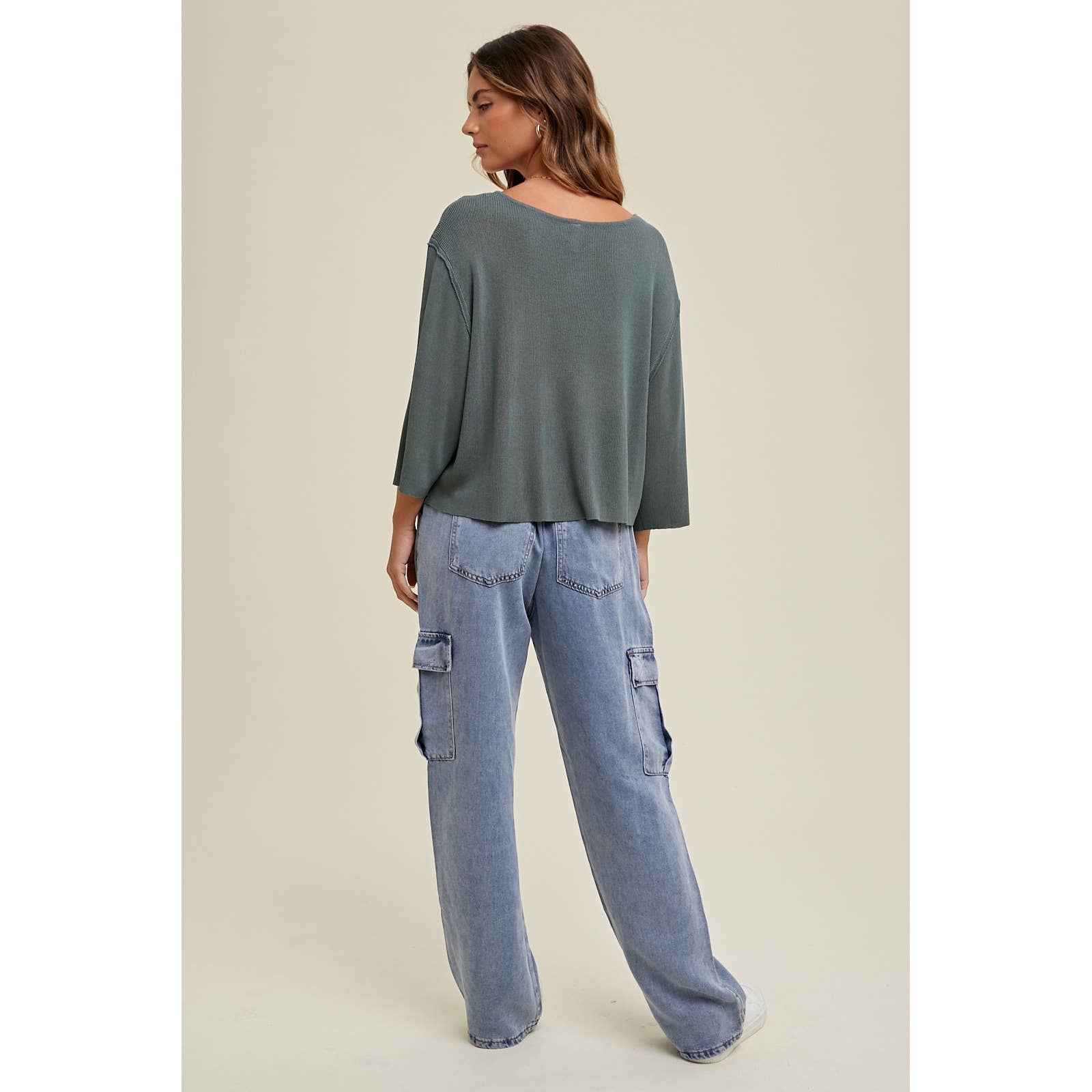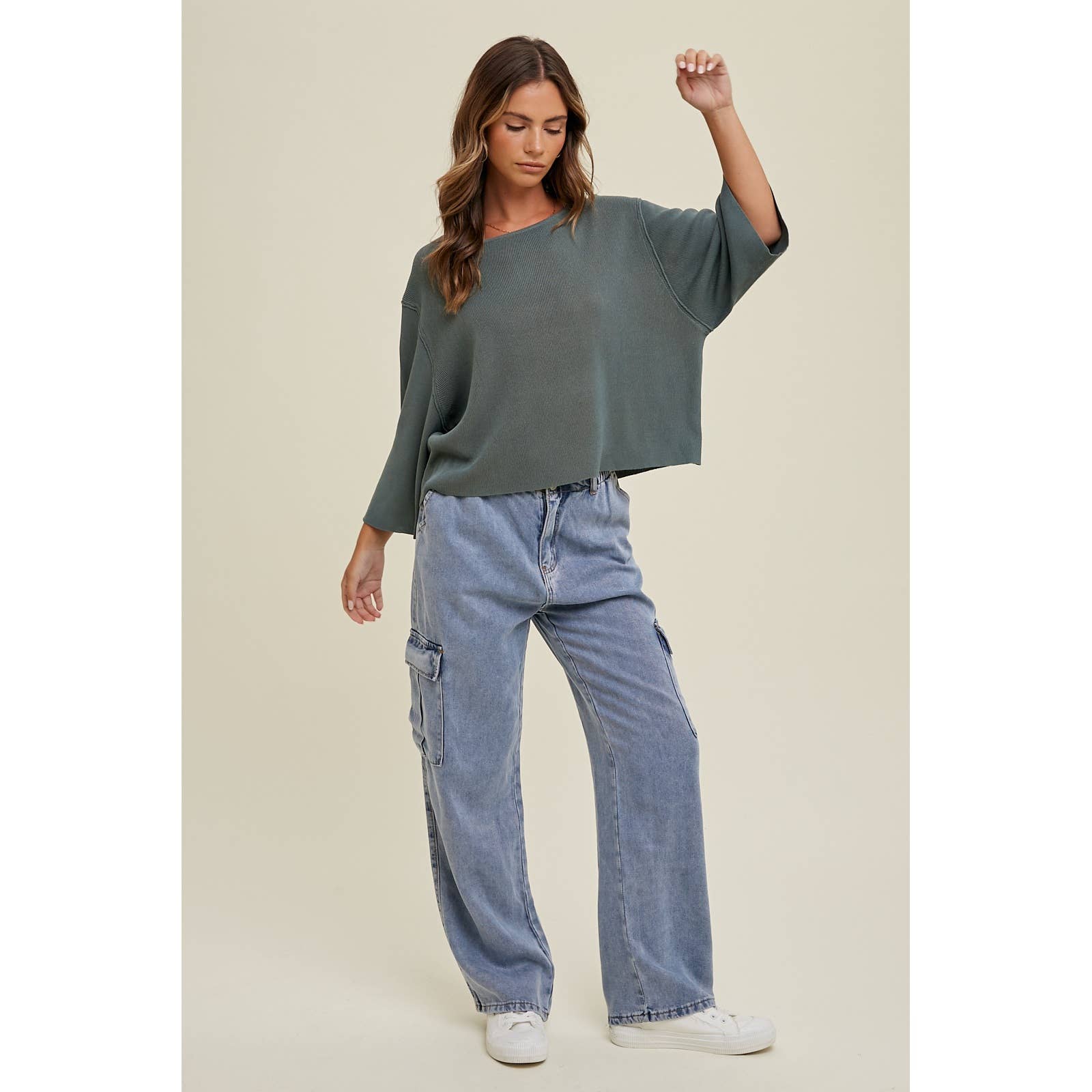 3/4 SLEEVE DROP SHOULDER SWEATER / WL24-8508