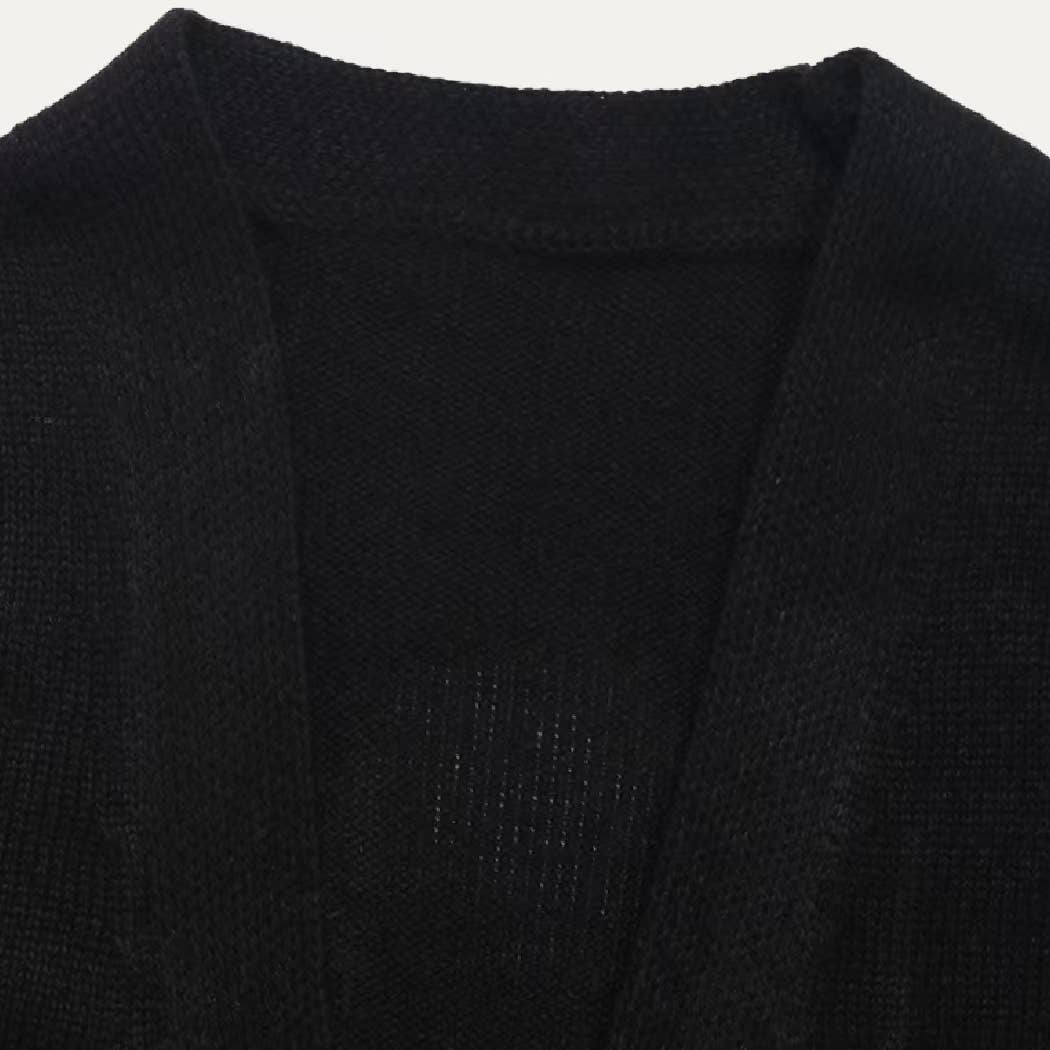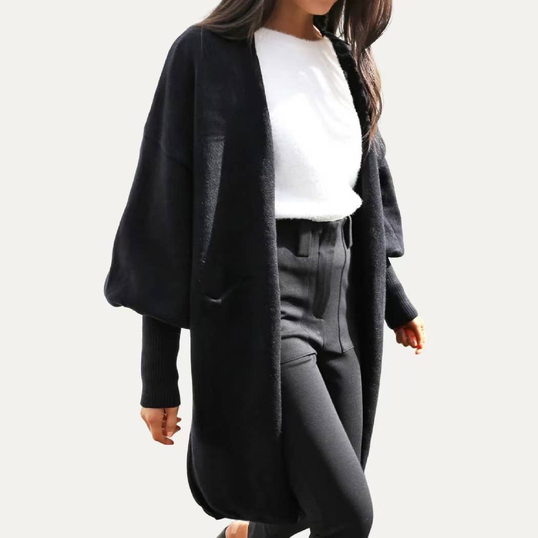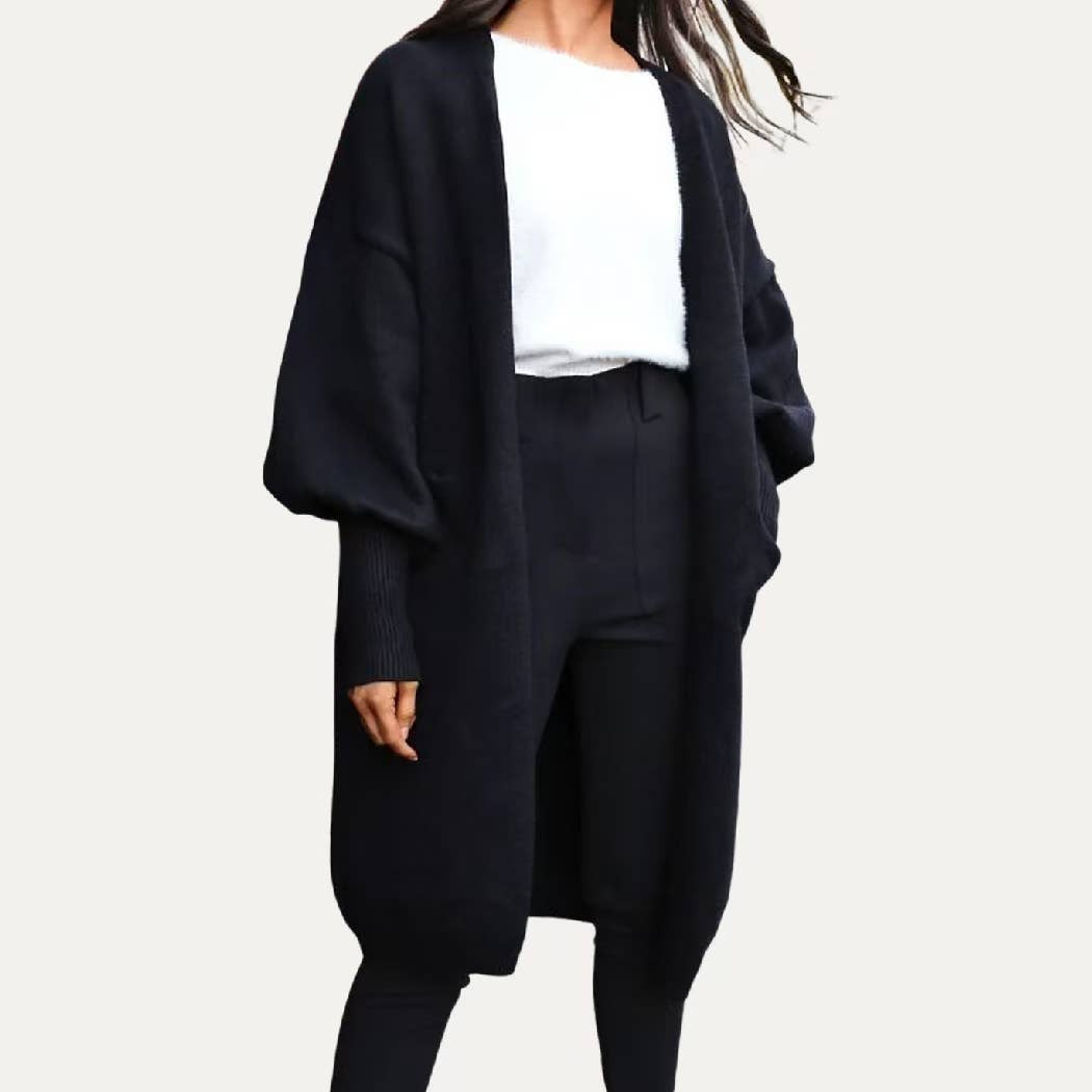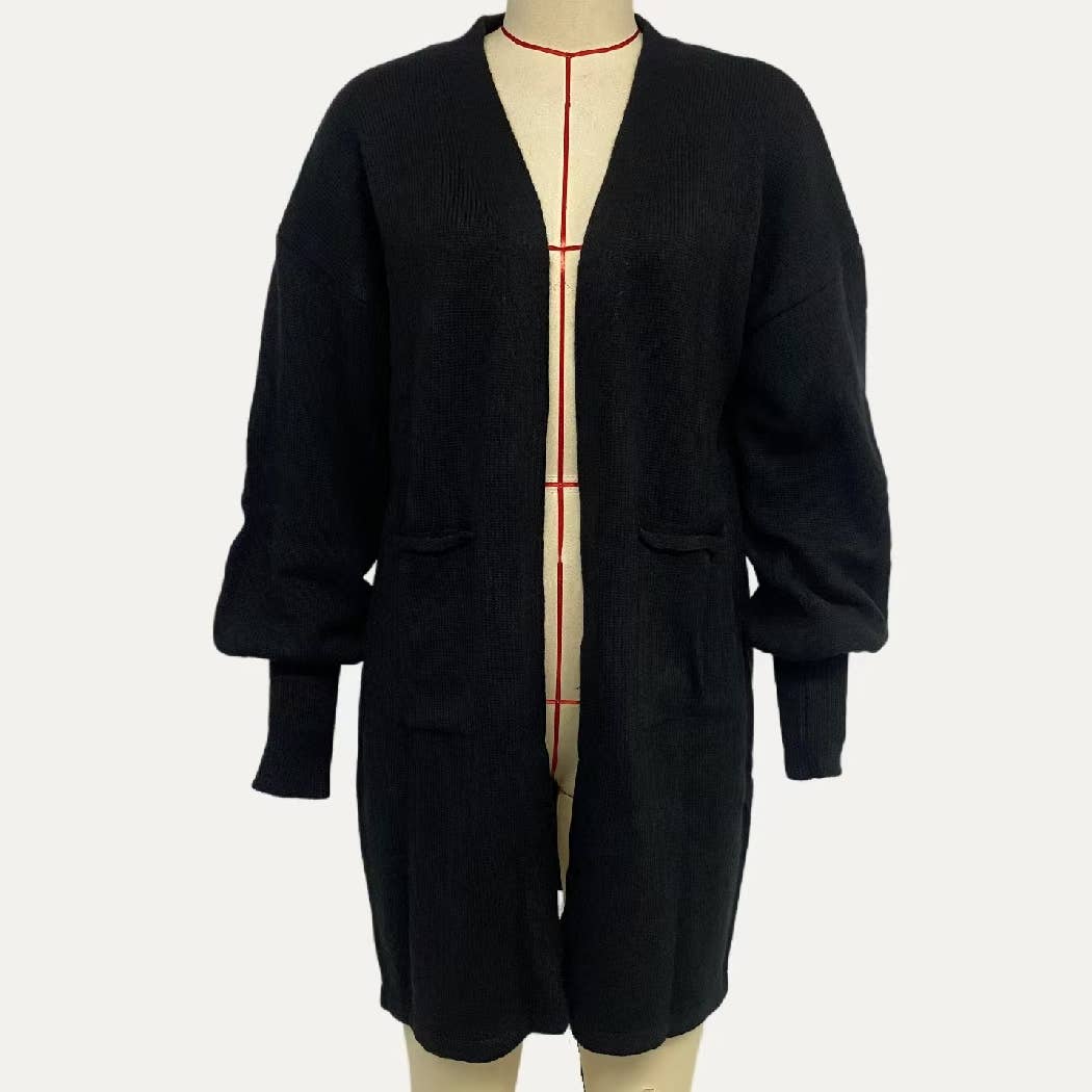 Cool Girl Black Balloon Sleeve Open Front Long Body Cardigan