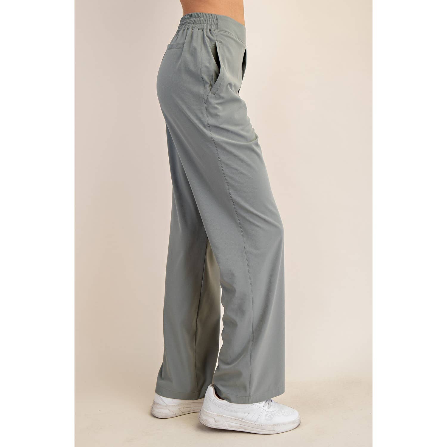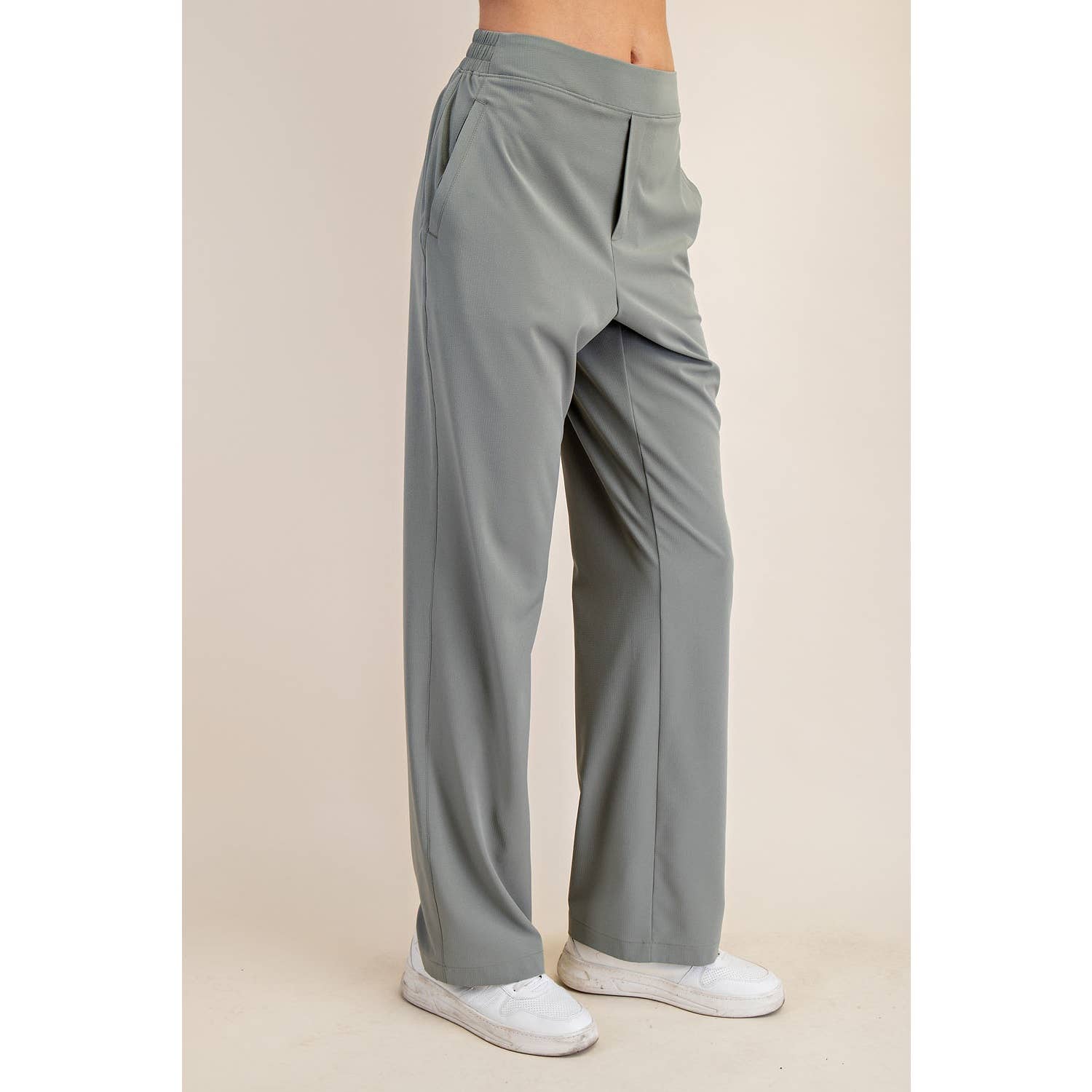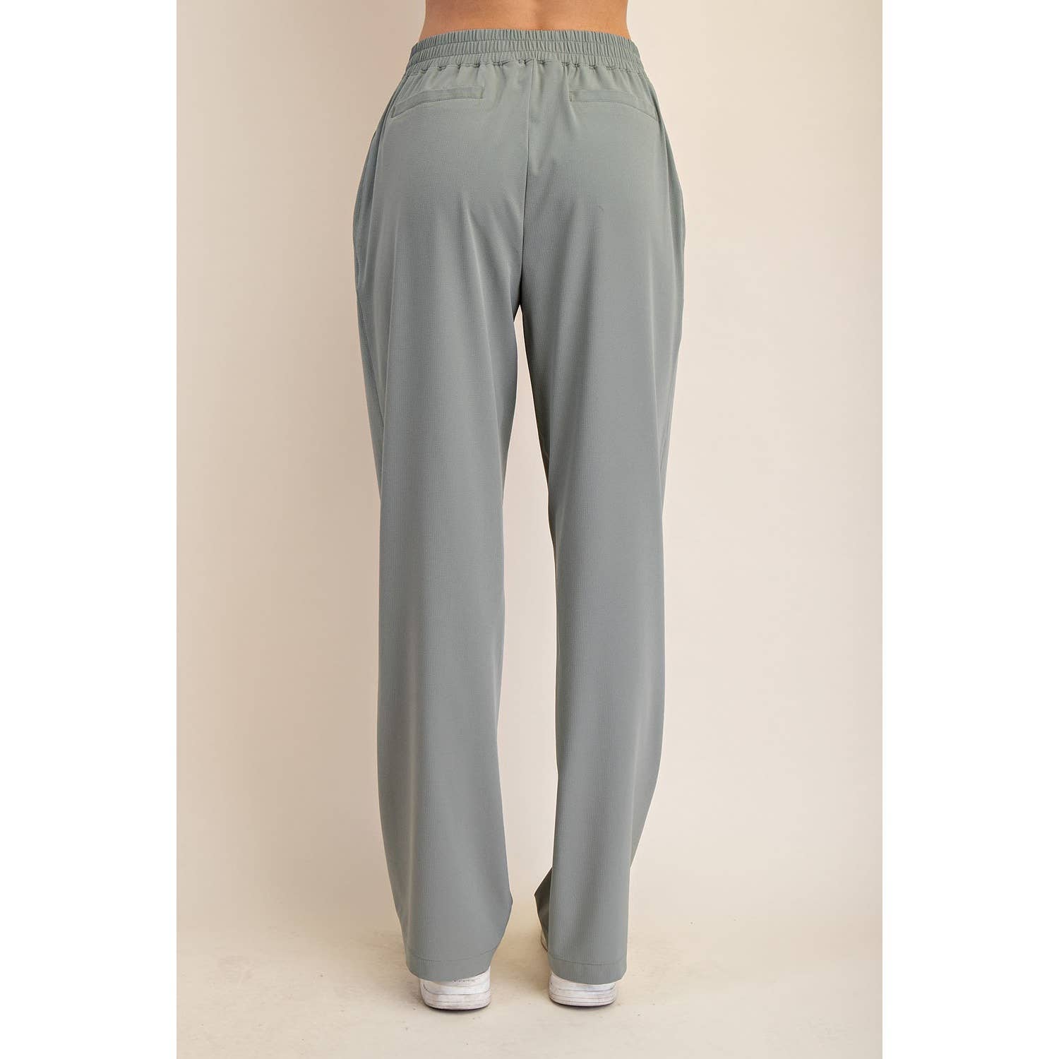 Elevate your wardrobe with these straight trousers in lightweight crinkled woven fabric. Featuring a mid-rise waistband (flat front, stretchy back) and a relaxed, straight fit, they effortlessly transition from work to weekend with a simple shoe change. Features: - Crinkled woven fabric - Lightweight - Relaxed fit - Straight pant - Slightly Bootcut line - Mid-waist / Mid-rise - Easy pull-on style - Elastic waistband (flat in front and stretchy in back) - Side pockets