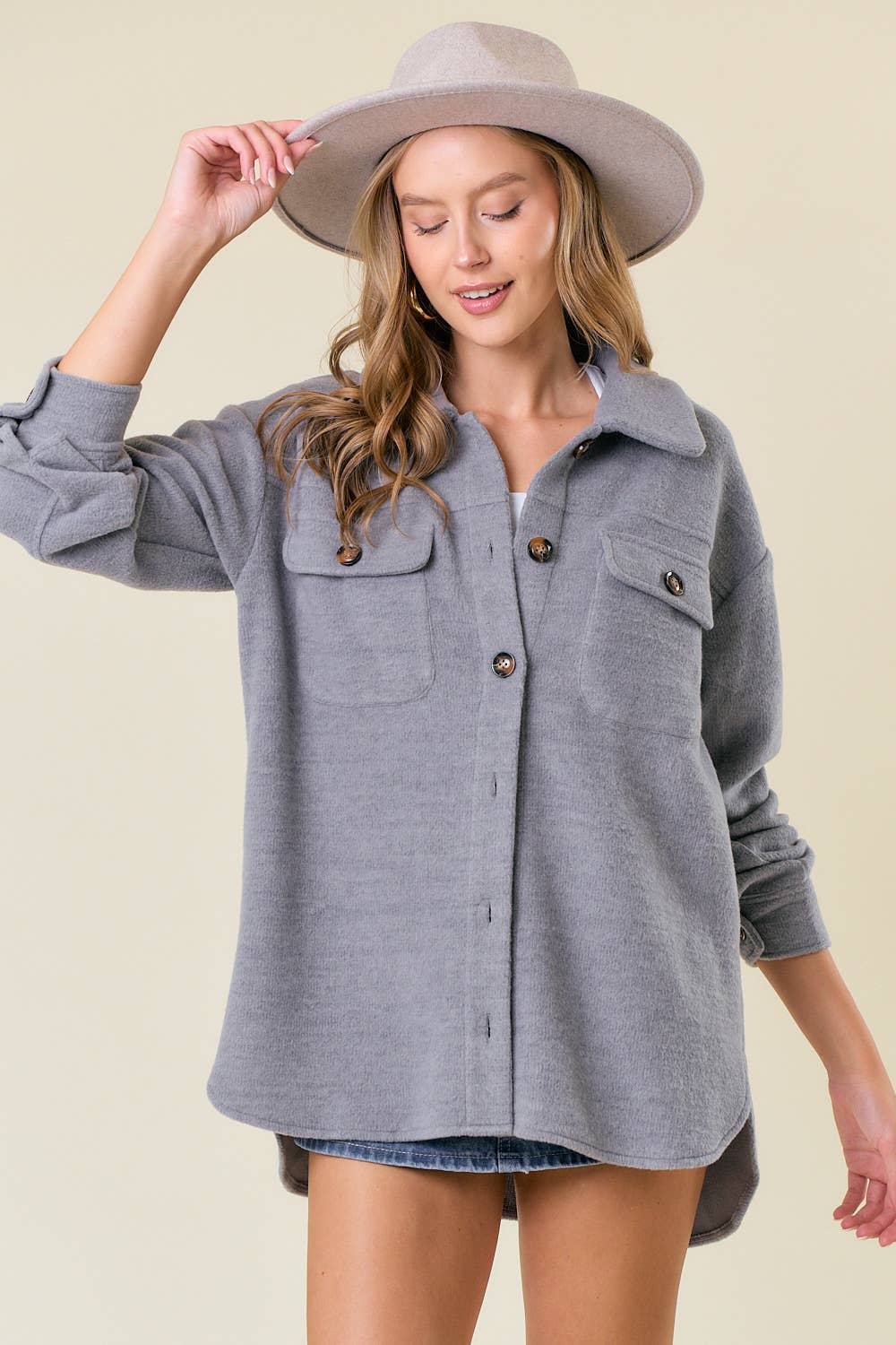 Fleece Knit Button-Down Shacket W/ Patch Pocket - 10606J