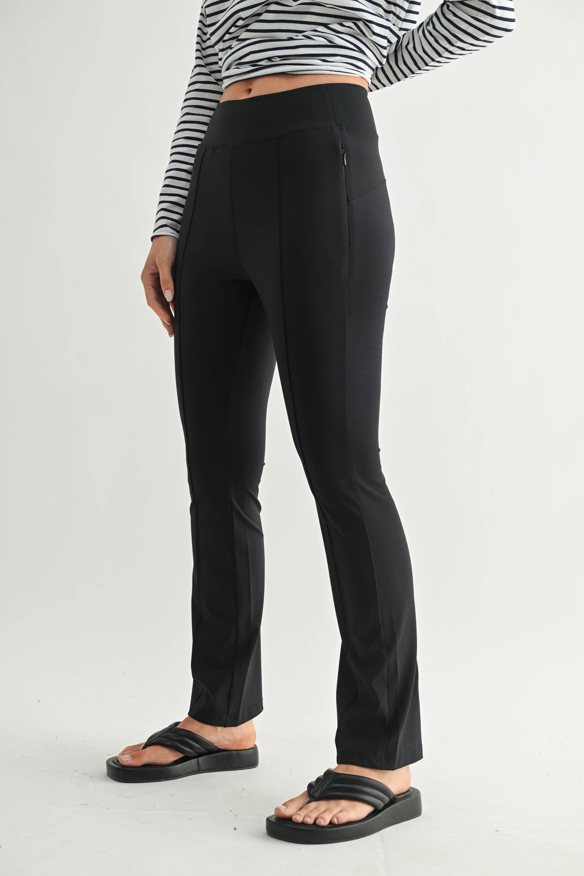 Crafted from high-performance Germanium fabric, these pants offer a smooth, soft feel with just the right amount of stretch for all-day flexibility. The straight leg silhouette flatters your figure while providing ease of movement, and the front pockets add a touch of functionality. Known for its numerous health benefits, Germanium fabric helps promote better circulation, improve skin health, and regulate body temperature—making these pants the perfect blend of fashion and wellness. Ideal for casual outings or elevated lounge looks. 91% nylon 9% spandex KNIT - 74% germanium 26% spandex 29" inseam