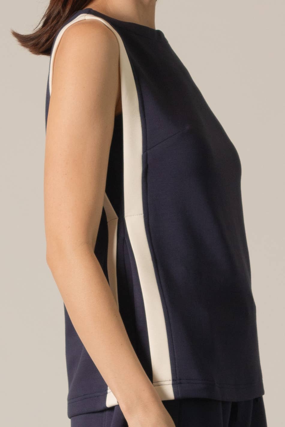 P. CILL Butter Modal Contrast Border Side Pocket Sleeveless