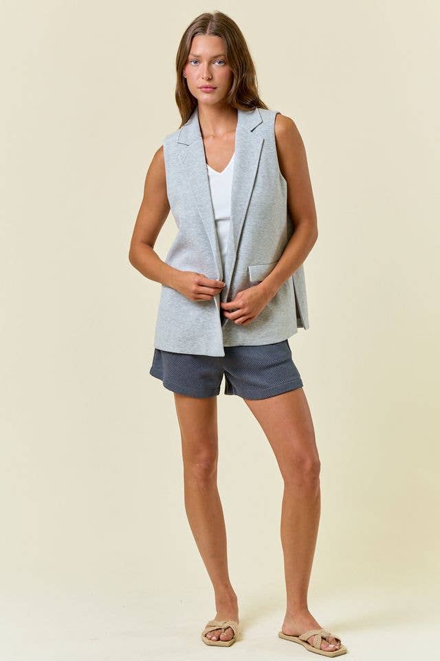Stretch Knit Open Front Long Vest - 10687J