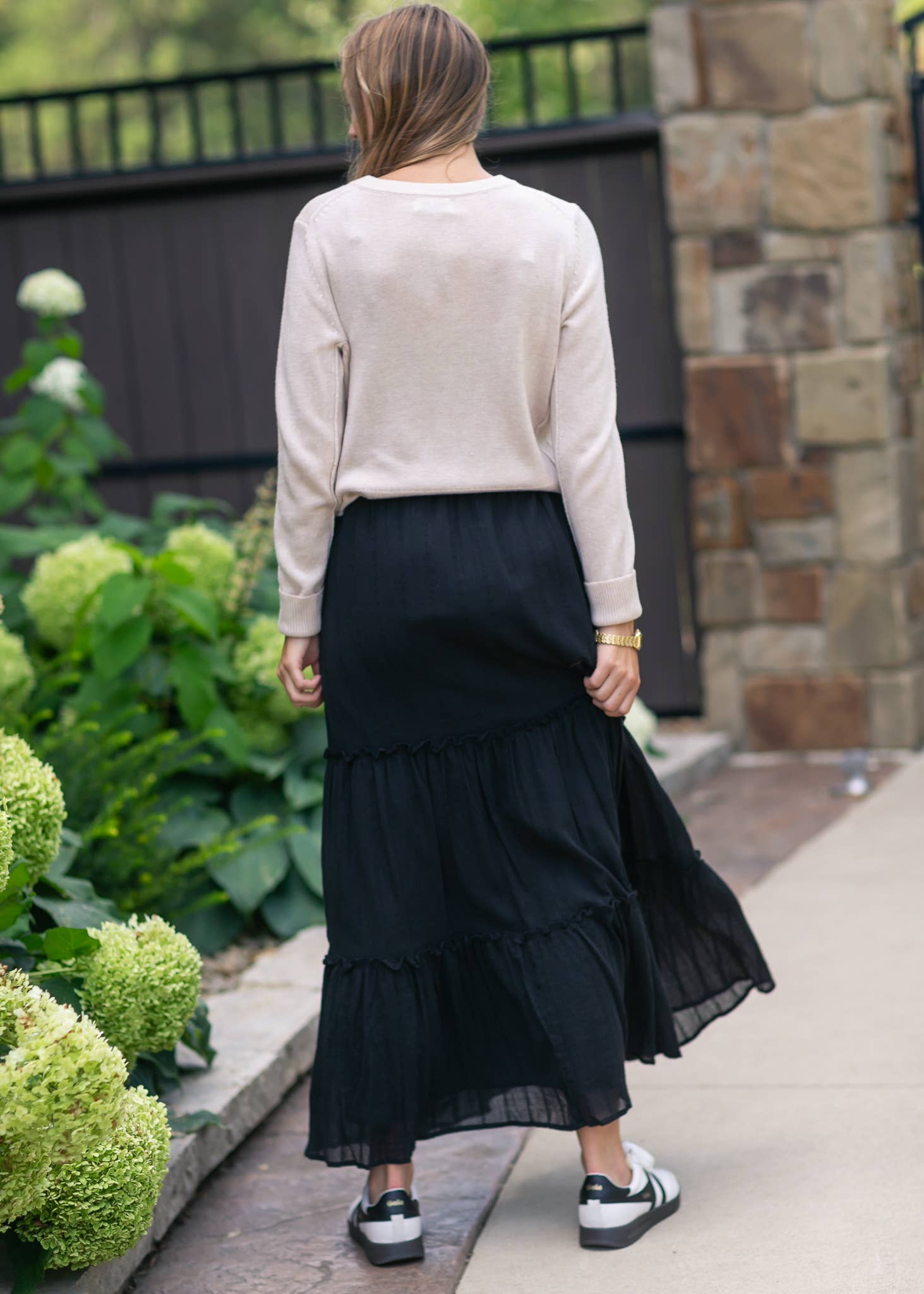 The Serena Gauze Maxi Skirt is an elevated and modest basic you will love! This high-quality maxi length skirt features an eyelet lace skirt that is tiered and adorned with small ruffles. It is lined and crafted from 100% cotton fabric, and is fully lined. The skirt is sure to be an enduring piece in any wardrobe! * Style | Maxi * Semi-Fitted * Stretch | Mid-Stretch * Model | True to Size